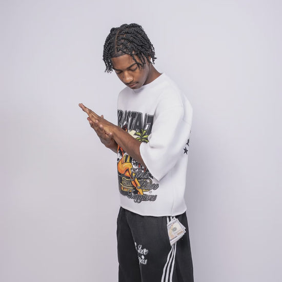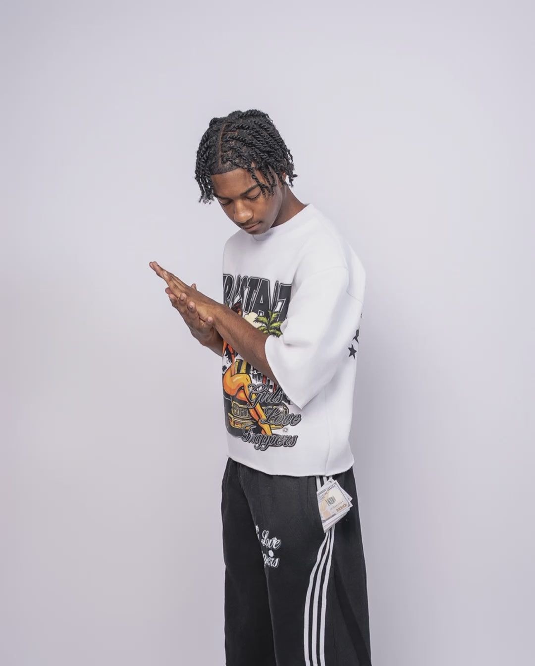 Step into the hustle with a street-luxury edge. This boxy, cropped tee brings a relaxed silhouette that hits just above the waist for the perfect pairing with high-rise denim, cargos, or joggers. Crafted from soft, breathable cotton, it keeps you comfortable while repping the Trap Starz grind in bold style.